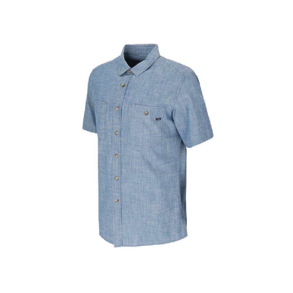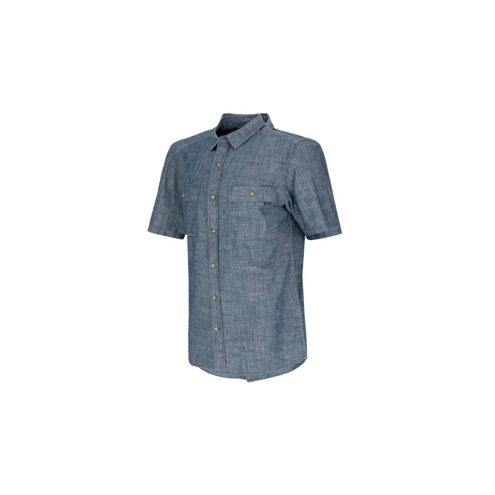 Camisa de hombre manga corta en 100% Polyester melange, su composición y construcción le entregan una elasticidad y secado rápido que ayuda a la rápida dispersión de la transpiración permitiendo que la sudoración se seque mayor rapidez. Cuenta con tratamiento UPF 50+, este tratamiento entrega una protección contra los rayos UV que pueden dañar las telas y la piel. Además gracias a su tratamiento HeiQ® Pure control de olor que te mantiene seco, fresco y sin malos olores, este tratamiento a diferencia de otros tiene un impacto mínimo en el medioambiente. Esta camisa tiene ventilaciones en la parte trasera y dos bolsillos con botón para guardar todos tus objetos con seguridad. Camisa hombre manga corta, 100% algodón chambray. Estilo fresco y cómodo. Suave al tacto, ideal para cualquier ocasión. Detalles de calidad, corte impecable. Resalta tu estilo con esta prenda versátil y transpirable. Eleva tu guardarropa con esta camisa que combina moda y comodidad. CUIDADOS DE LA PRENDA: Lavar a máquina con agua a temperatura media max. 30º. Lavar con colores similares. Lavar con prendas similares. No usar suavizante. Usar detergente suave. Secadora en baja temperatura. Planchar a temperatura baja. No lavar en seco. Secado recomendado, tender el producto en posición horizontal y bajo sombra.