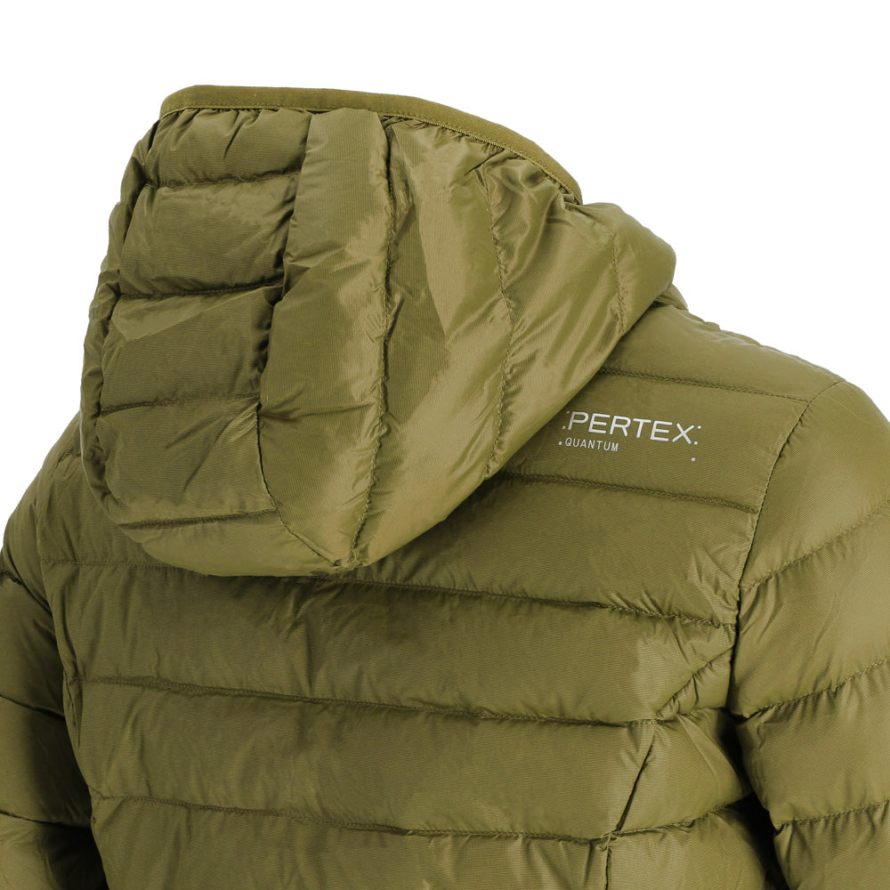 Confeccionada con tela Pertex Quantum, fabricada a partir de fibras ultrafinas que atrapan el aire para mejorar la eficiencia térmica. Es una tela liviana, resistente al viento y con tratamiento DWR (Durable Water Repellent) para proteger de lluvias ligeras. La parka es compactable y se guarda fácilmente en su bolsa de transporte, ideal para viajes o uso urbano.