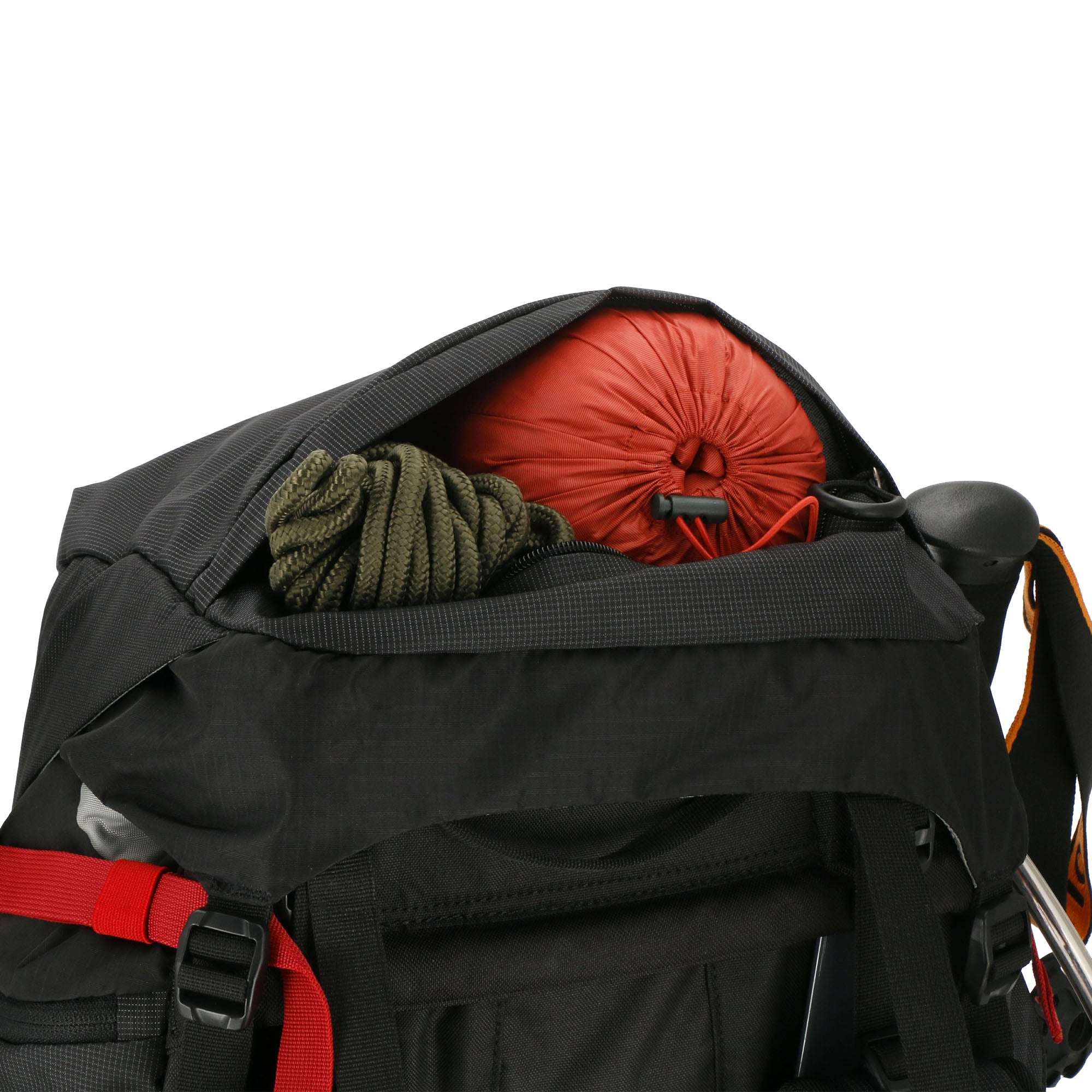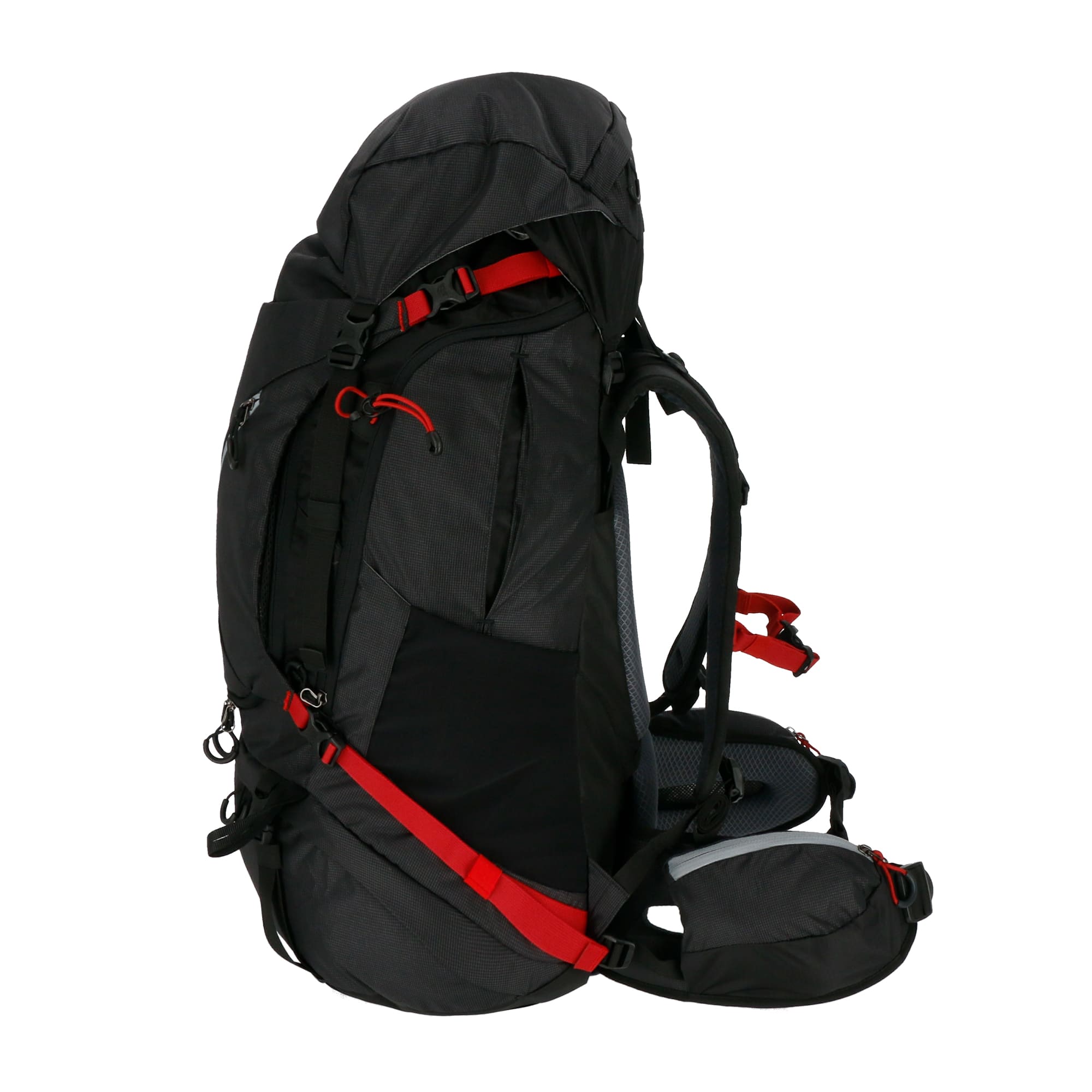 Incluye cubre mochilas. Acceso superior e inferior. Porta piolet-bastón. Salida bolsa de hidratación. Compartimiento para sacos. Peso 2,3Kgs