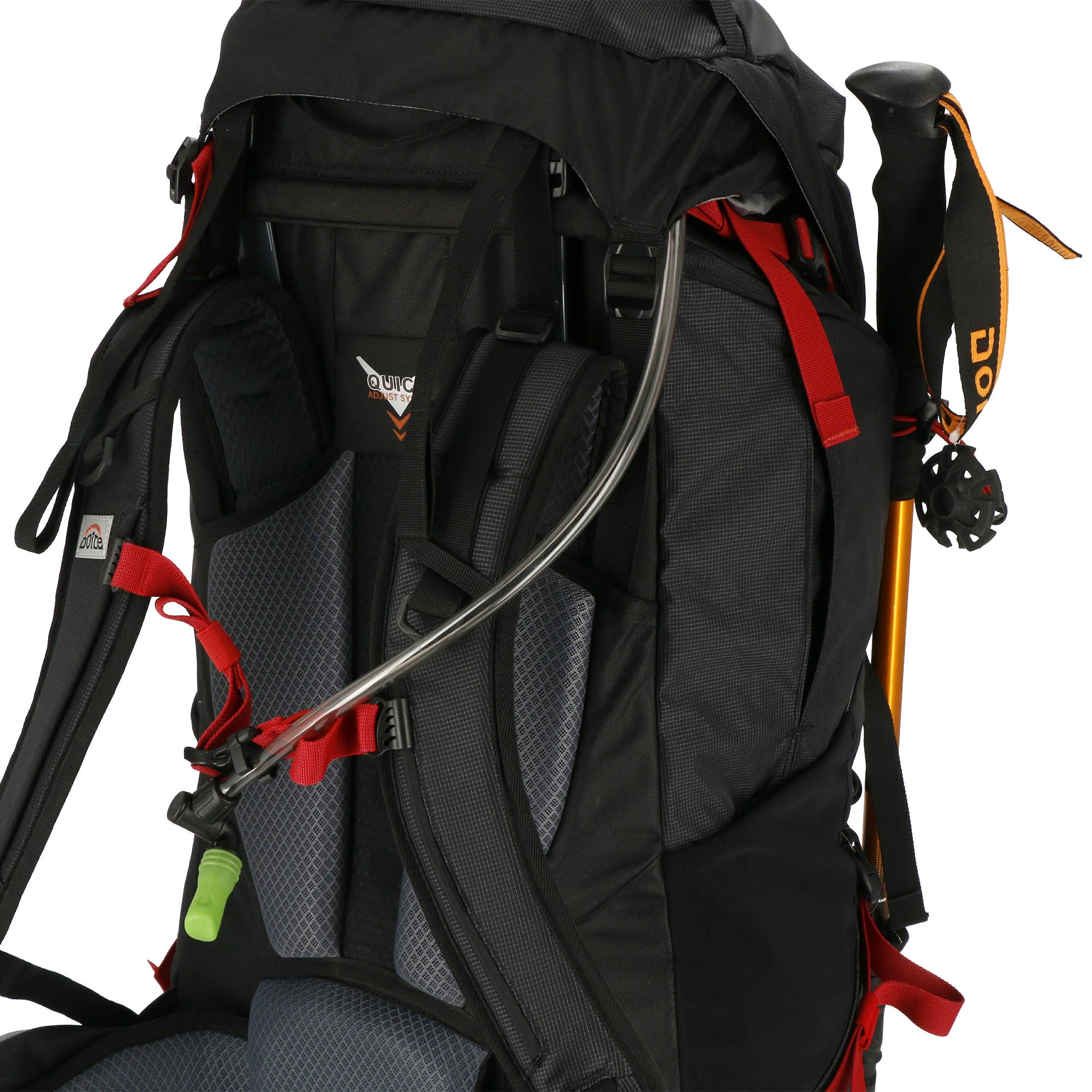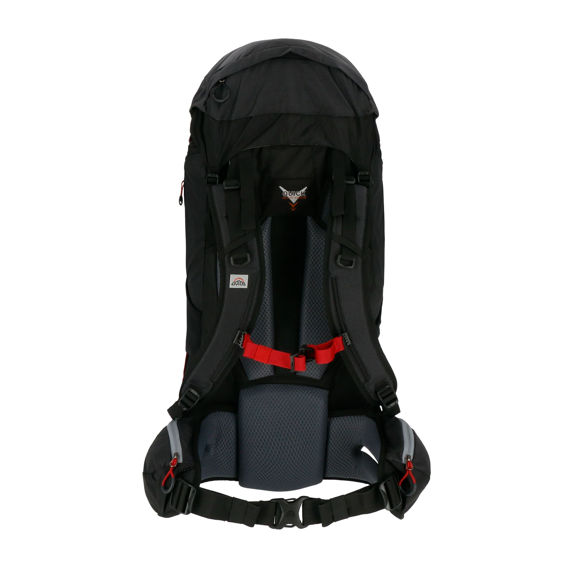 QUICK AJUST SYSTEM: Espaldar con ventilación central y apoyo lumbar. Las correas de los hombros pueden modificarse en 3 posiciones distintas, permitiendo adaptar su longitud según las necesidades de cada persona.