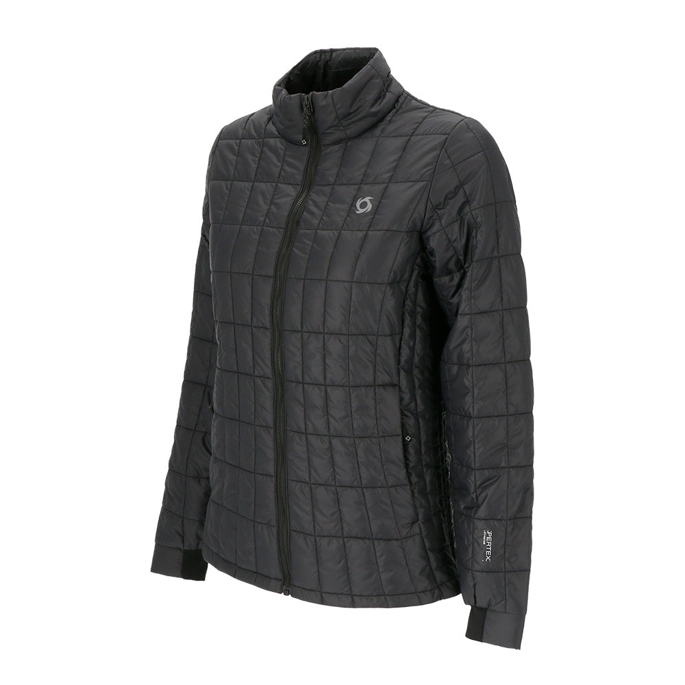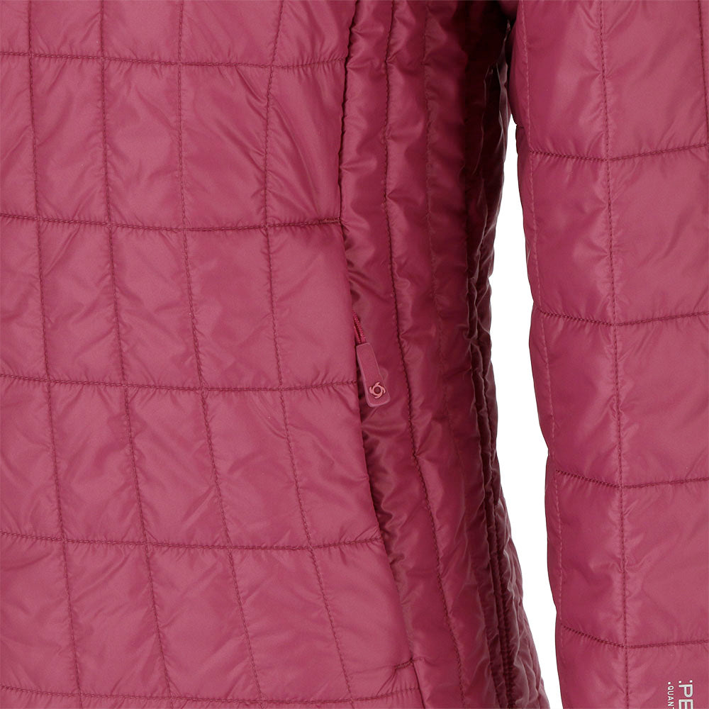 Chaqueta con diseño de paneles que siguen la silueta para un calce favorecedor. Con relleno sustentable Dupont Sorona Aura, parcialmente hecho con plantas, es ecoamigable y biodegradable. La tela Pertex Quantum ofrece suavidad y excelente aislamiento. Con cuello alto y bolsillo con cierre, brinda protección y practicidad. Una opción elegante y responsable que combina moda y conciencia ambiental.
