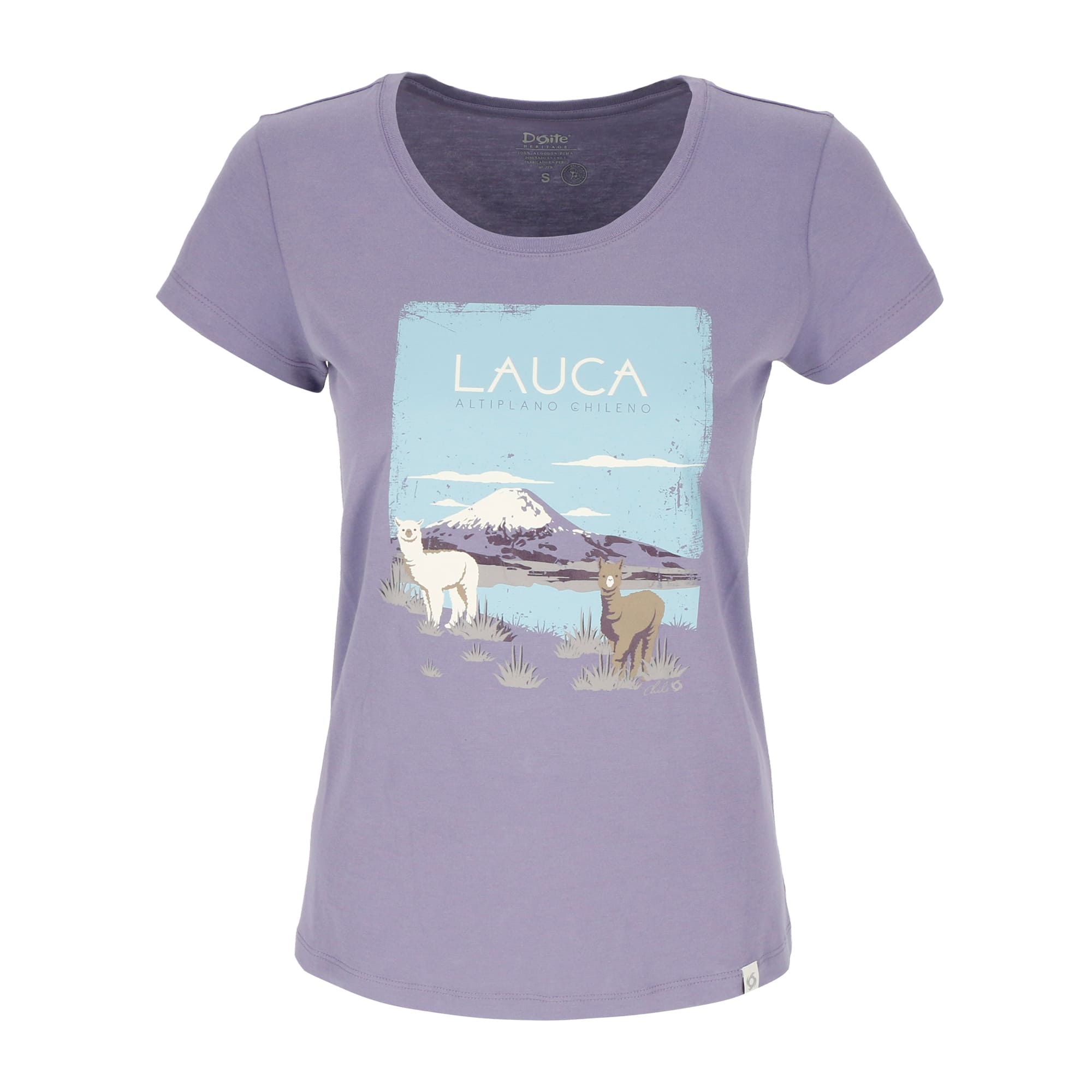 Polera confeccionada en 100% algodón pima peruano con estampado del parque nacional Lauca. Calse regular. El algodón pima proviene de Perú. Esta se cataloga como uno de los mejores algodones del mundo debido a que su sistema de cosechado a mano reduce la huella de carbono y no daña la fibra. Por lo que tiene una alta calidad.