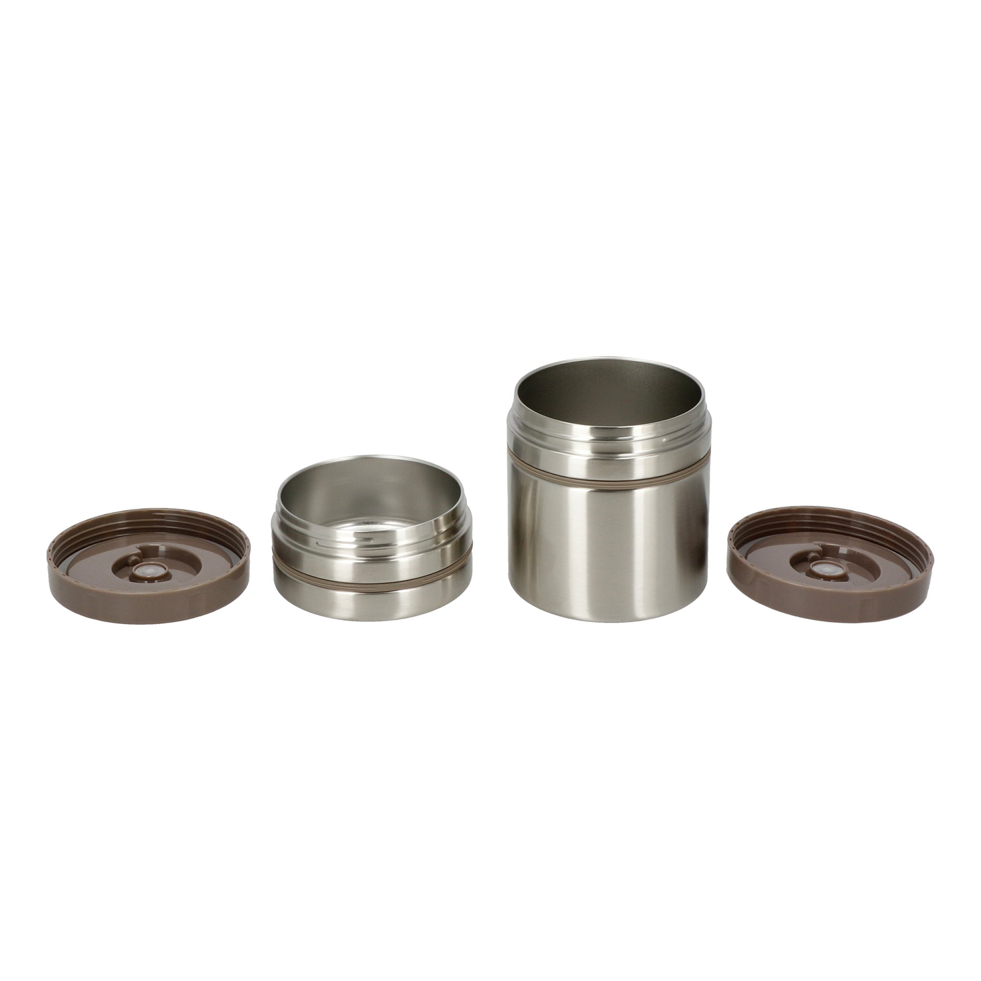 - CONTENEDOR 675 ml. Doble pared de acero inoxidable con botón de goma en la tapa para liberar presión.