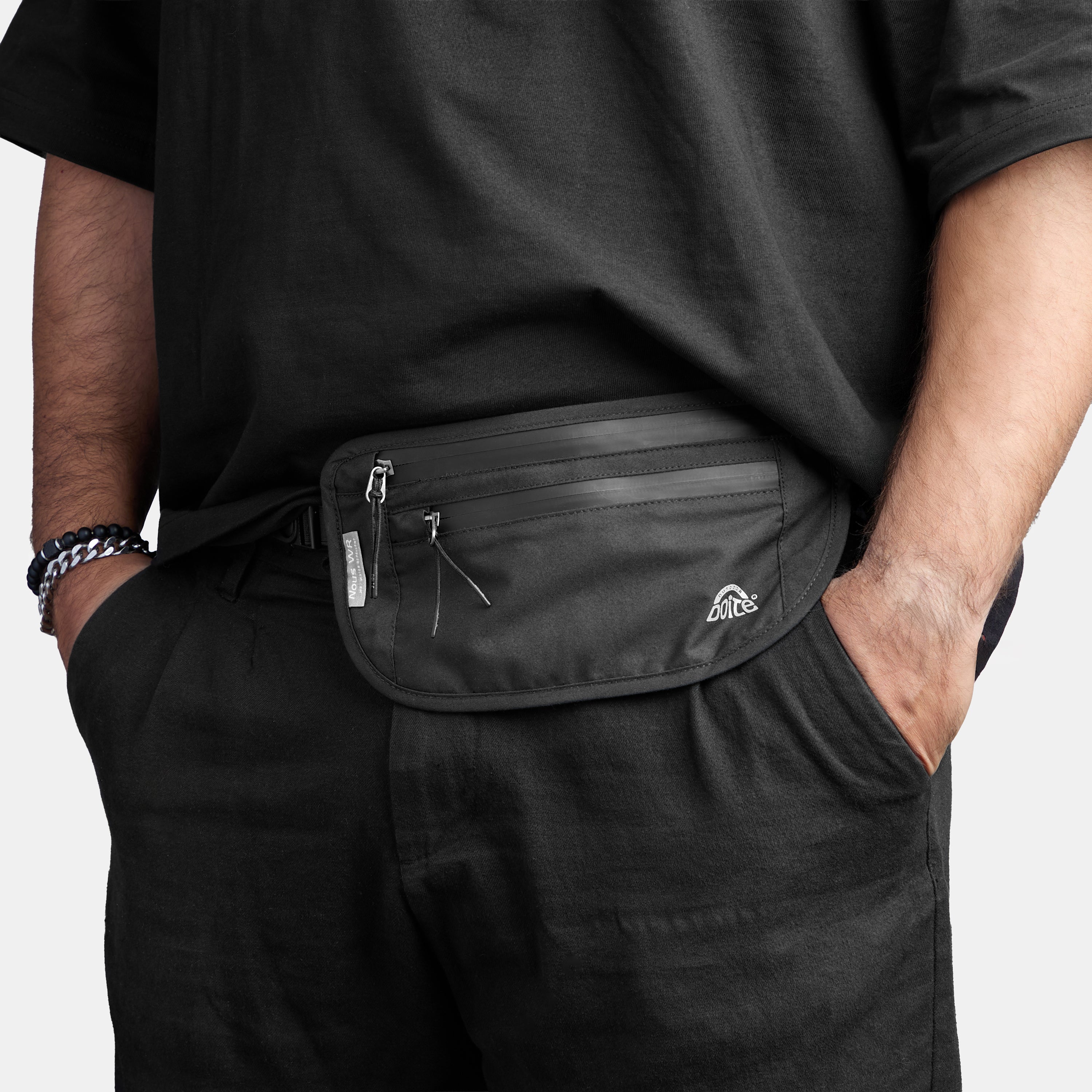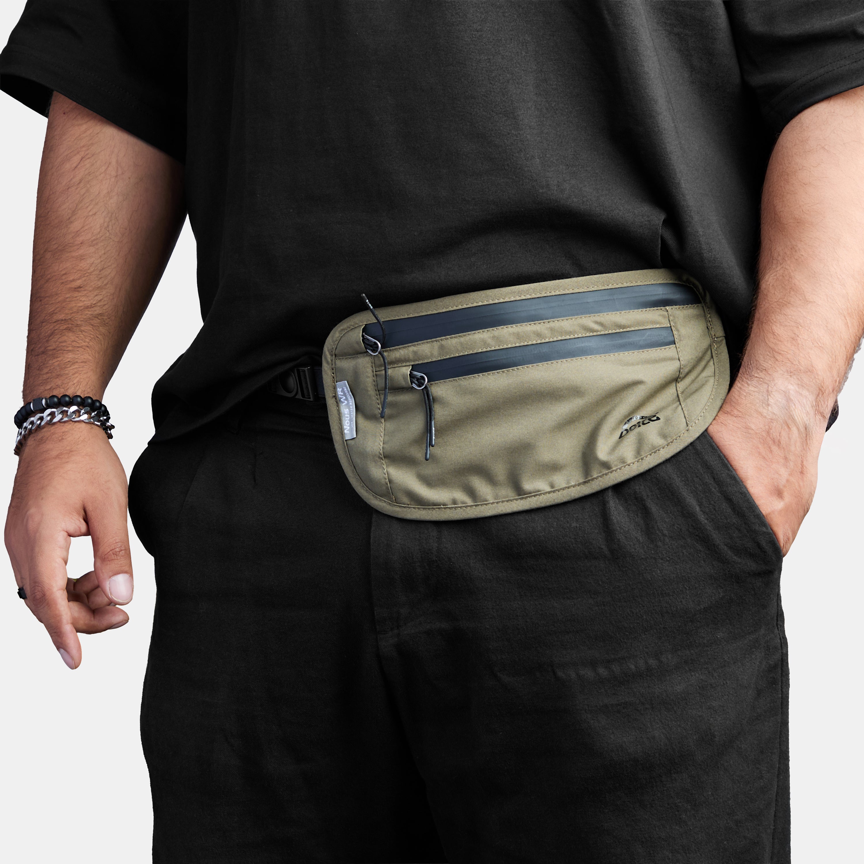 El Banano Nous redefine la discreción y el confort. Diseñado con un perfil ultra delgado de apenas 0,5 cm de profundidad, actúa casi como una segunda piel, siendo ideal para viajeros que prefieren llevar sus documentos de valor ocultos bajo la chaqueta o para deportistas que buscan cero rebote.