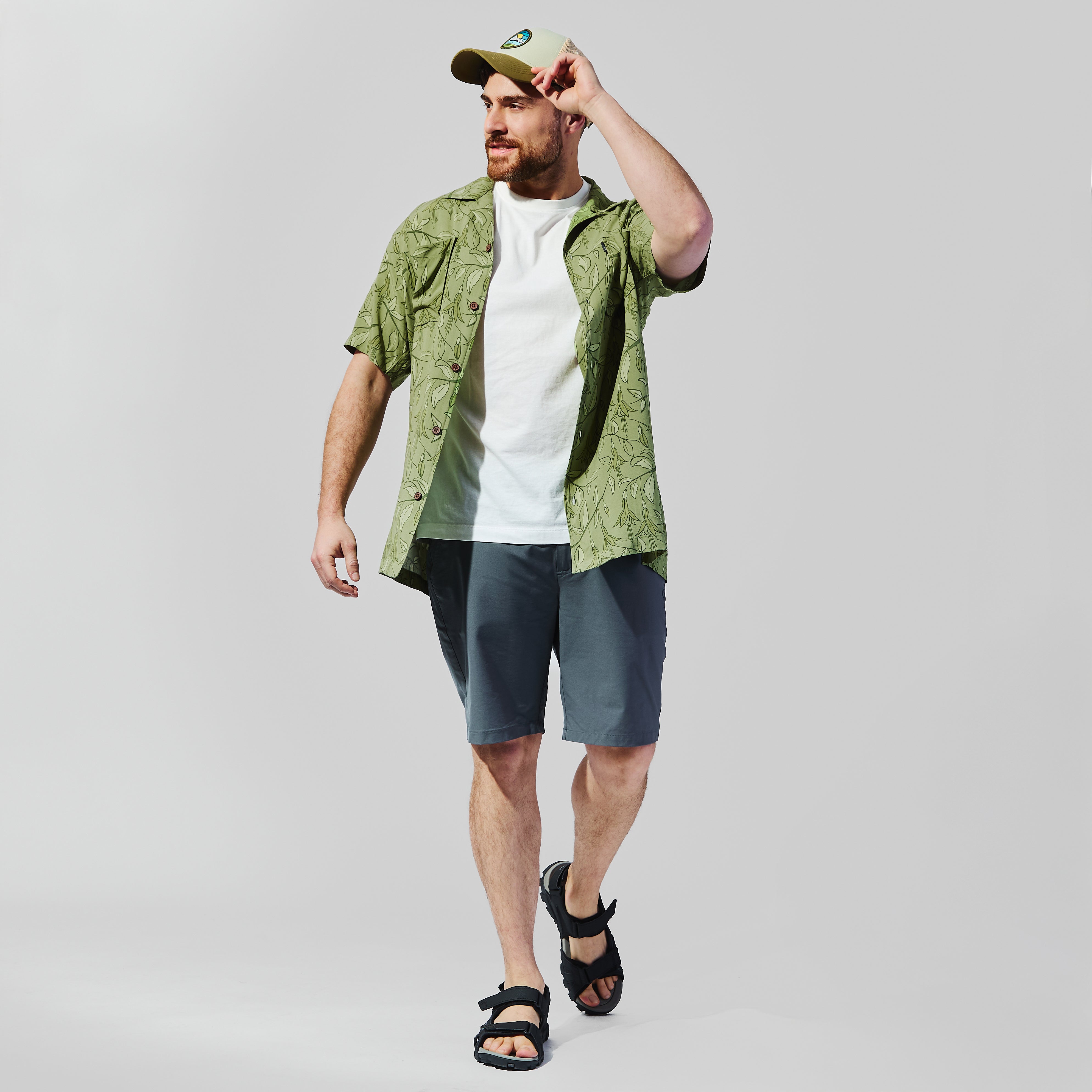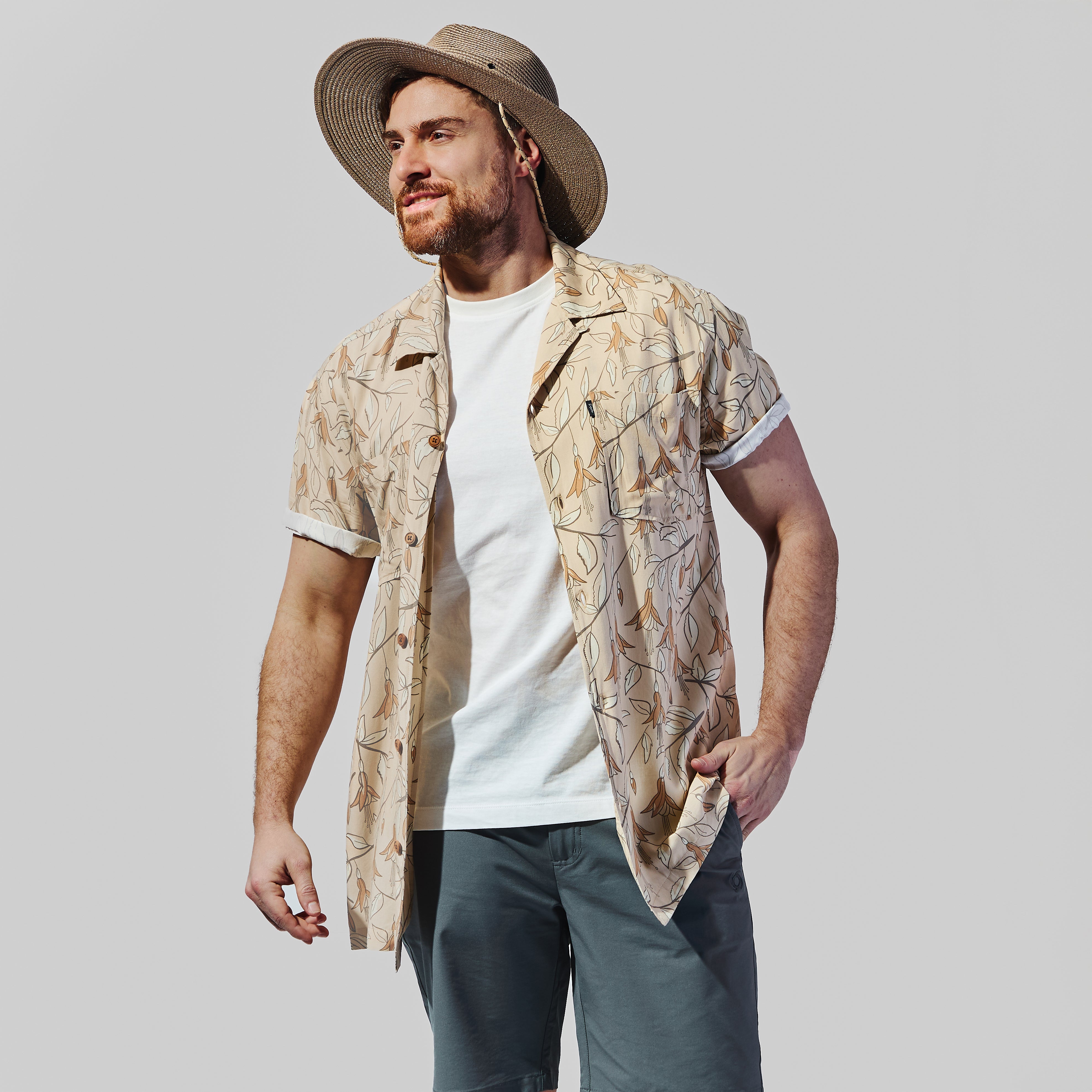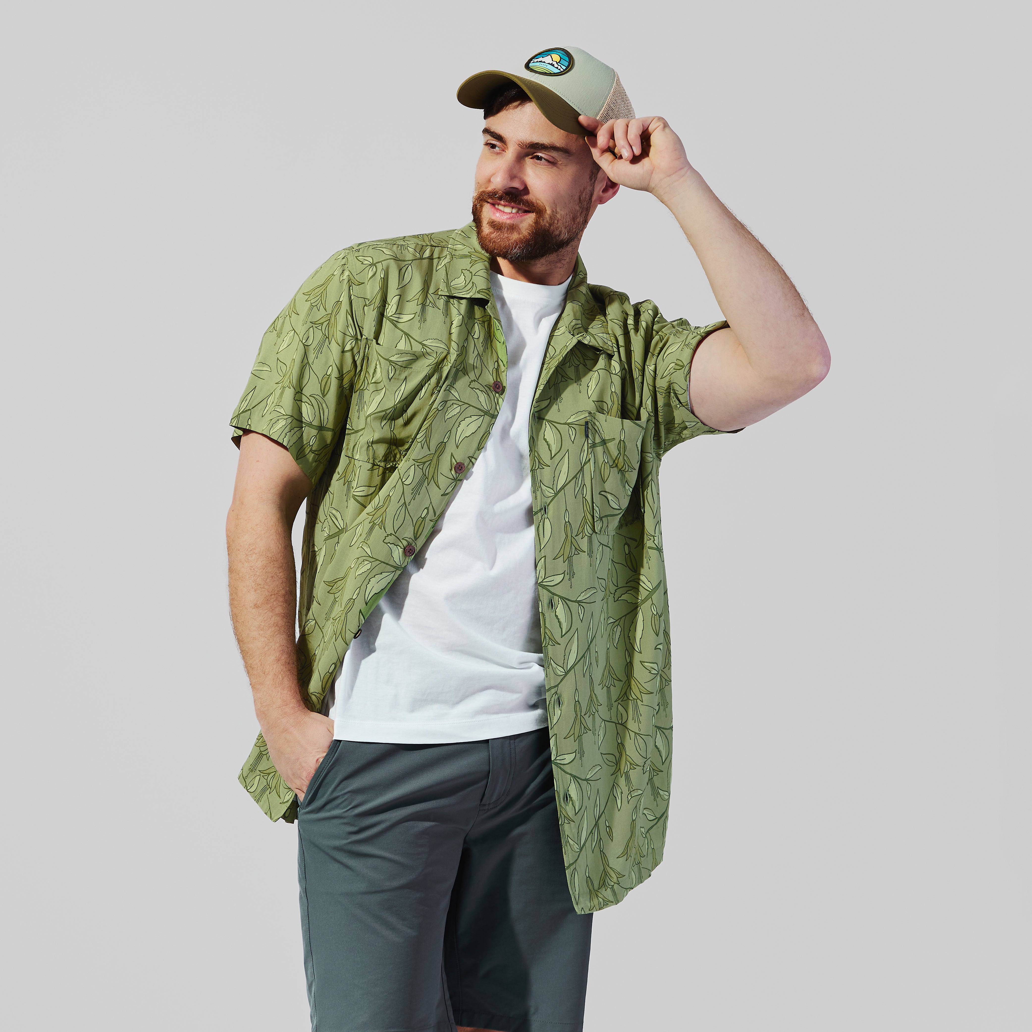 Camisa Tiki construida para frescura real y uso veraniego. Su estructura en 100% rayón —fibra regenerada de celulosa con tacto sedoso y caída fluida— mantiene sensación ligera incluso en calor elevado. El calce holgado mejora ventilación natural y estabilidad térmica. El print inspirado en el chilco incorpora identidad local en un formato tipo hawaiano. Prenda liviana y funcional para jornada diaria en clima cálido.