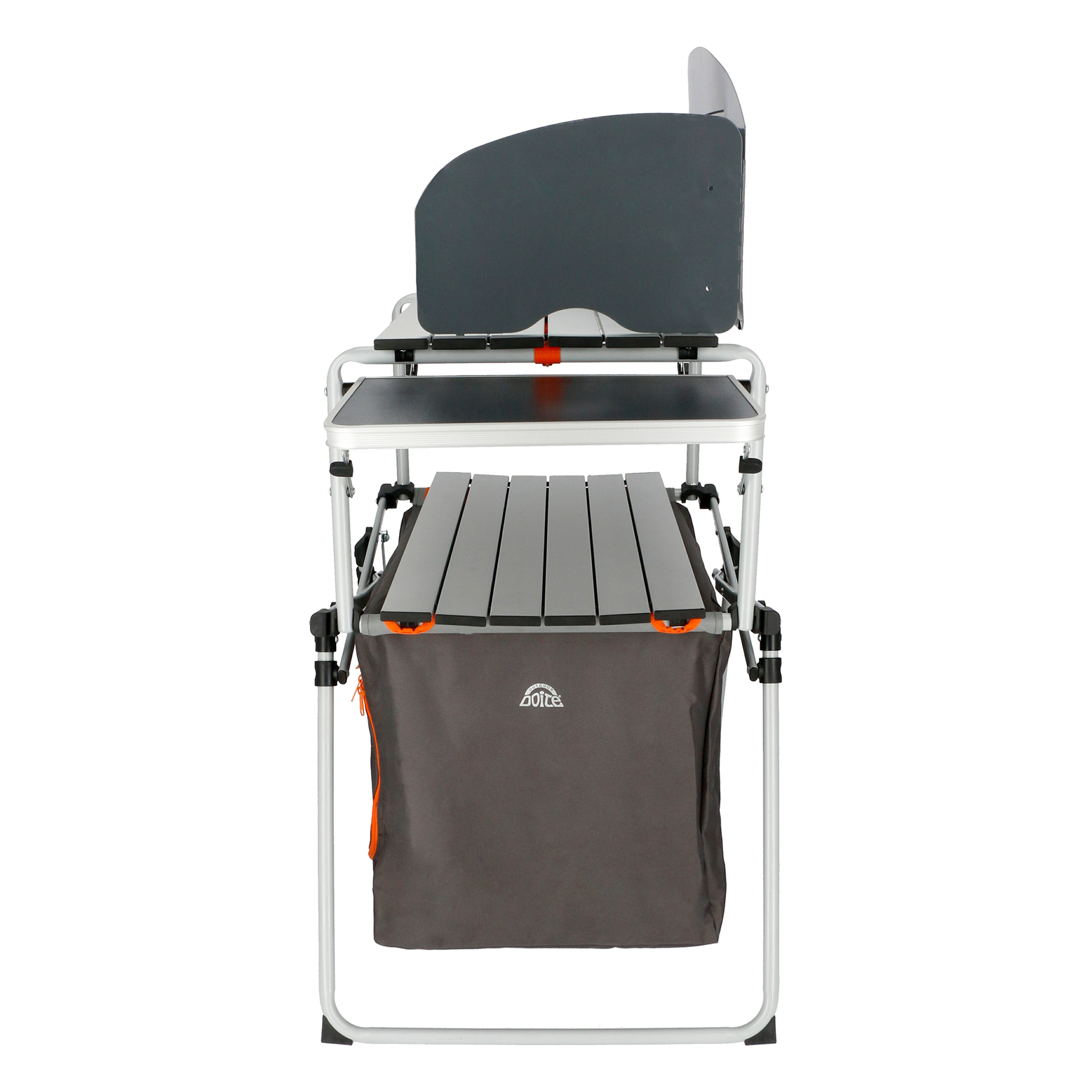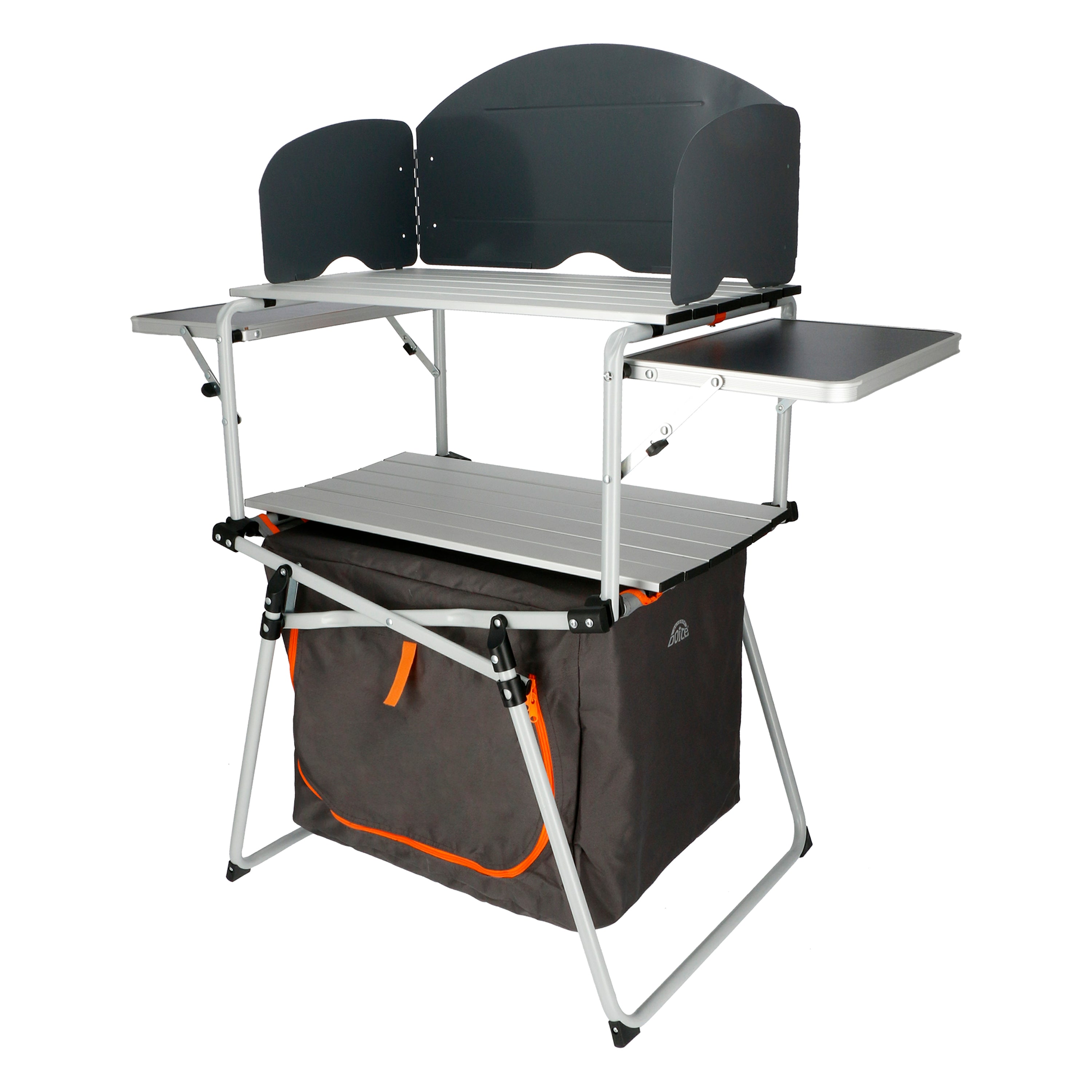 La Cocina Compacta Plegable Doite es el centro de operaciones definitivo para tus vacaciones familiares. Este mueble integral está diseñado para ofrecer una experiencia culinaria sin frustraciones en medio de la naturaleza. Su robusta estructura de Acero soporta hasta 30 kg de carga, mientras que su superficie principal cuenta con una bandeja de Aluminio resistente al calor, ideal para operar cocinillas a gas con total seguridad.